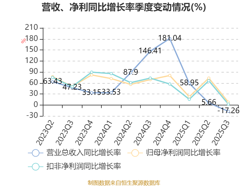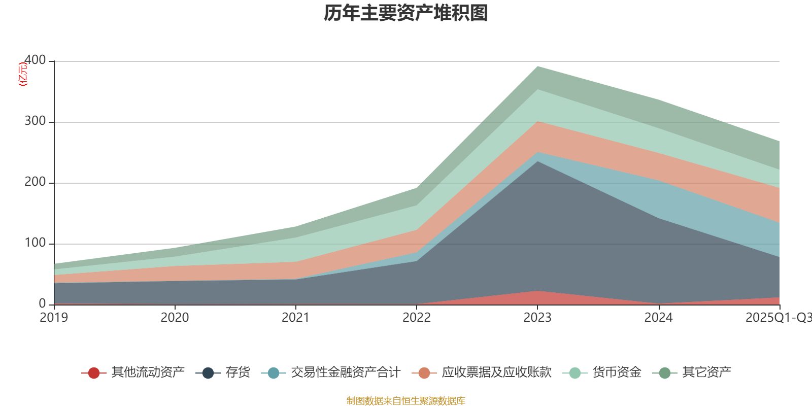 资产重大变化方面,截至2025年三季度末,公司存货较上年末减少52.72%,占公司总资产比重下降16.93个百分点;应收票据及应收账款较上年末增加27.31%,占公司总资产比重上升8个百分点;其他流动资产较上年末增加675.88%,占公司总资产比重上升3.91个百分点;交易性金融资产合计较上年末减少9.31%,占公司总资产比重上升2.56个百分点。