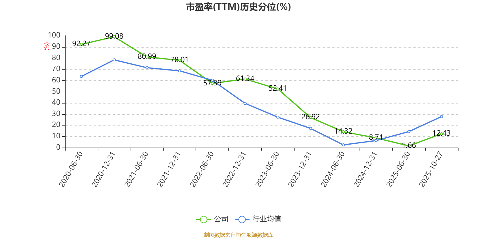 市盈率、市净率为负时,不显示当期分位数,会导致折线图中断。