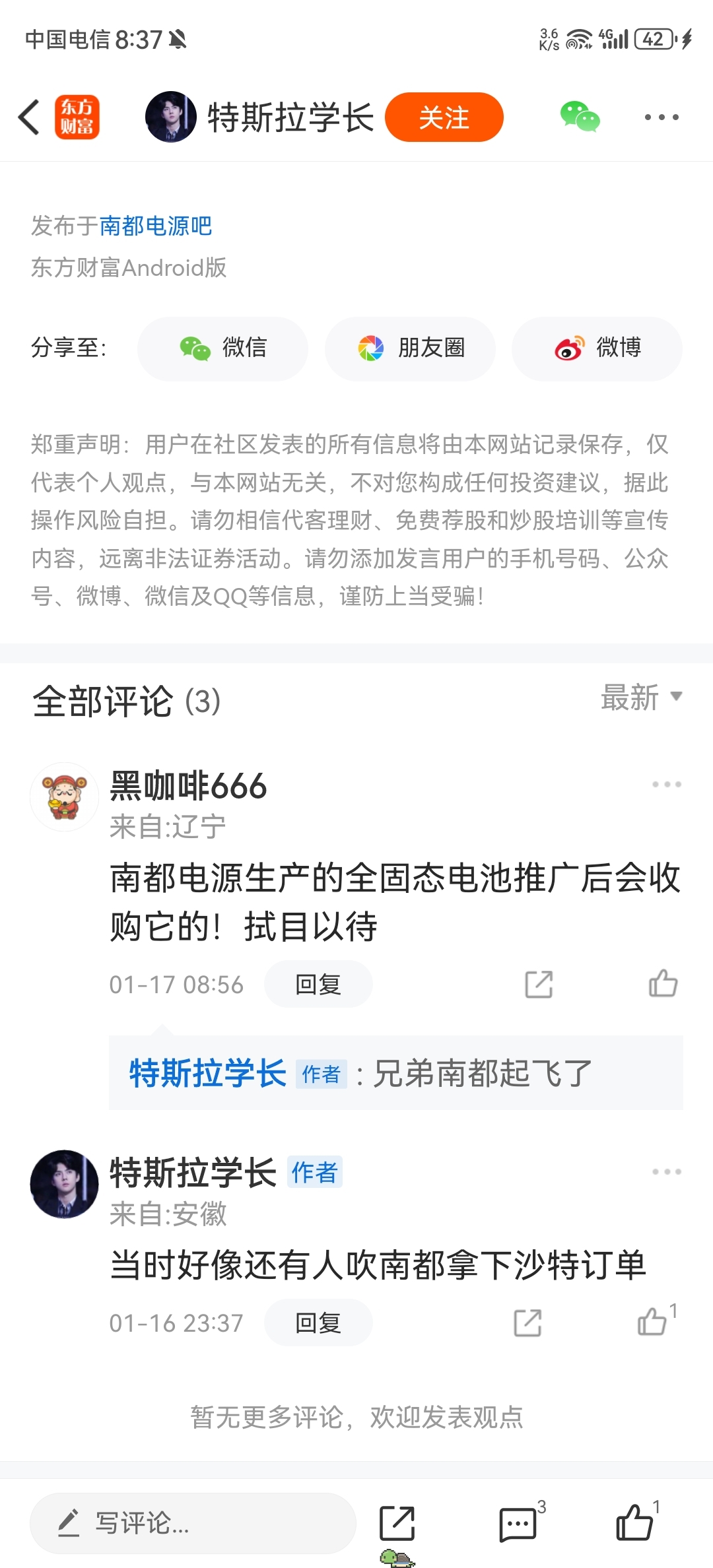 温馨提示: 1.根据《证券法》规定,禁止编造、传播虚假信息或者误导性信息,扰乱证券市场;2.用户在本社区发表的所有资料、言论等仅代表个人观点,与本网站立场无关,不对您构成任何投资建议。用户应基于自己的独立判断,自行决定证券投资并承担相应风险。《东方财富社区管理规定》
