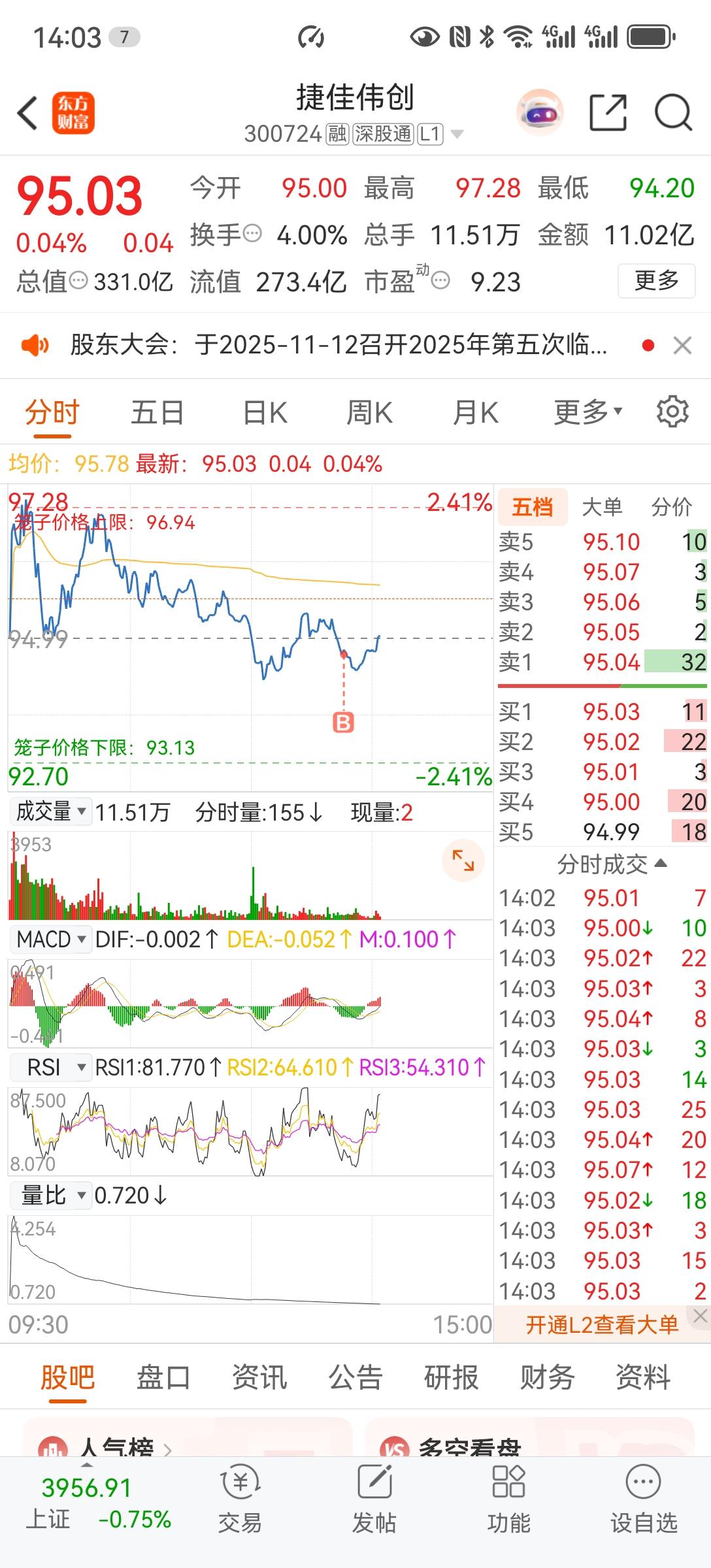 3、股价处于历史最高点的腰位(~90/200),一个月前借半年报发布和大盘上行趋势,呼了一波翻倍。派发基本完成,但吸筹时间略显不够(当然,捷佳是具备再次起飞的充分条件,看主力意愿了)。