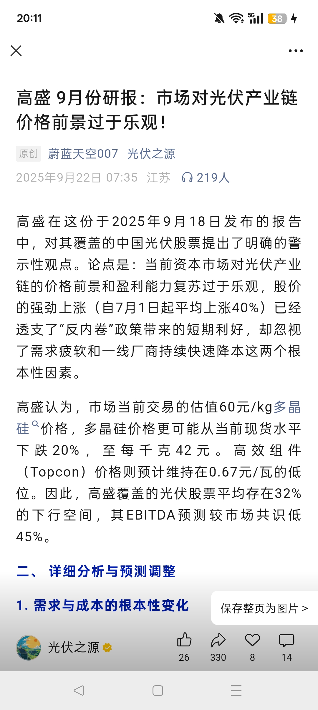 1光伏反内卷,利好光伏企业,短期利空上游。别犟,犟就是你赢了。股价会告诉你答案。