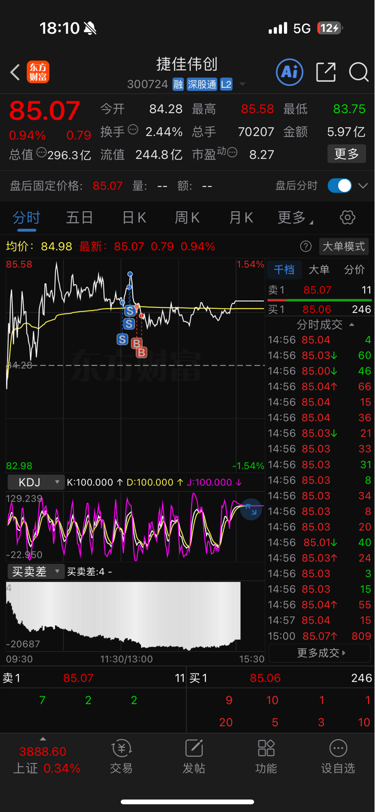 $捷佳伟创(SZ300724)$ 实在是忙,只有下午操作下,操作都是浪费电