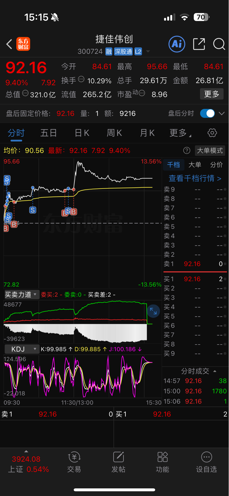 $捷佳伟创(SZ300724)$ 险,这周不动了