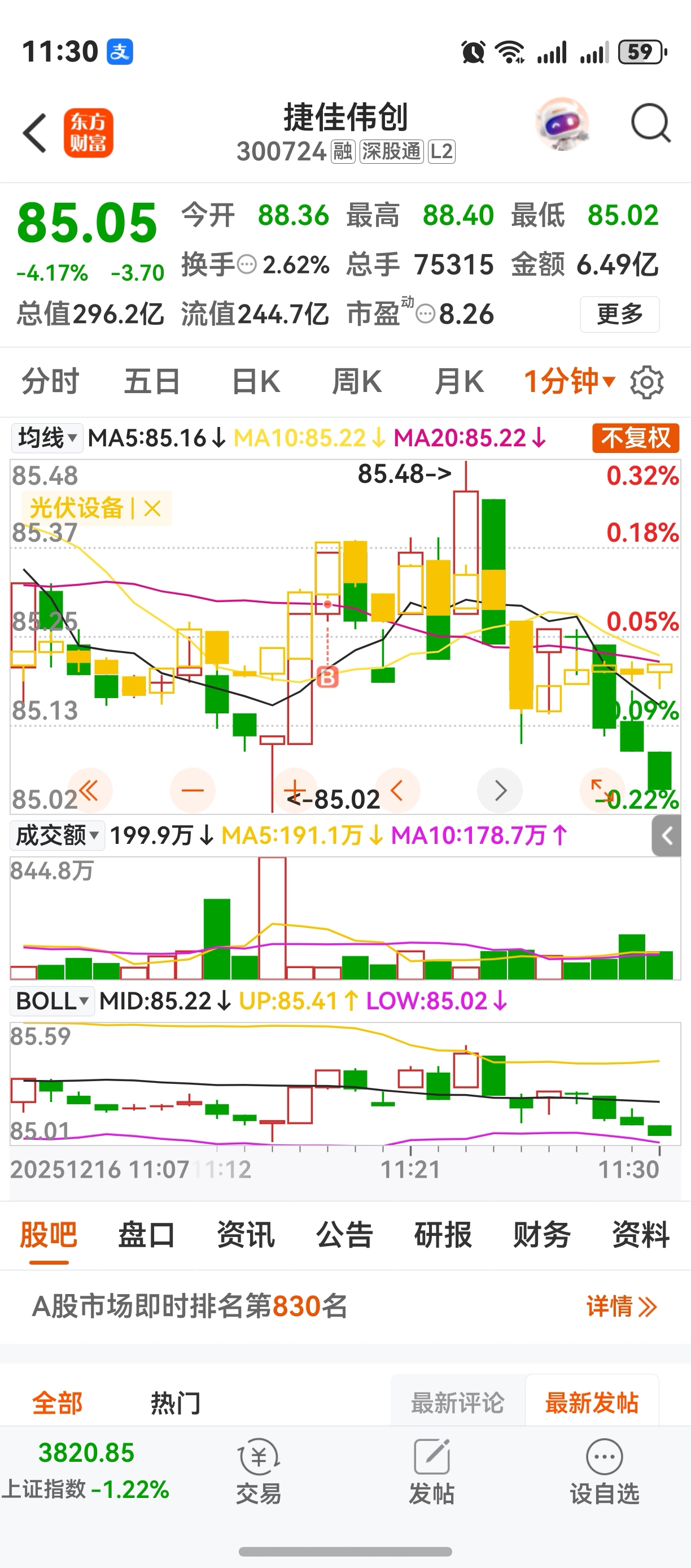 $捷佳伟创(SZ300724)$ 萝卜青菜、各有所爱!承认自己就一个韭菜盒子不丢人,本身股票投资有风险,起起伏伏很正常,涨跌原因千千万,各自做到知行合一即可。今日上午继续保留了昨天底仓2成捷佳伟创,开盘在负5⃣左右获利全卖出了$东方日升(SZ300118)$ 、然后继续加仓了点儿捷佳伟创,烦请那些看空又不做空的脑梗患者勿喷#实盘记录#