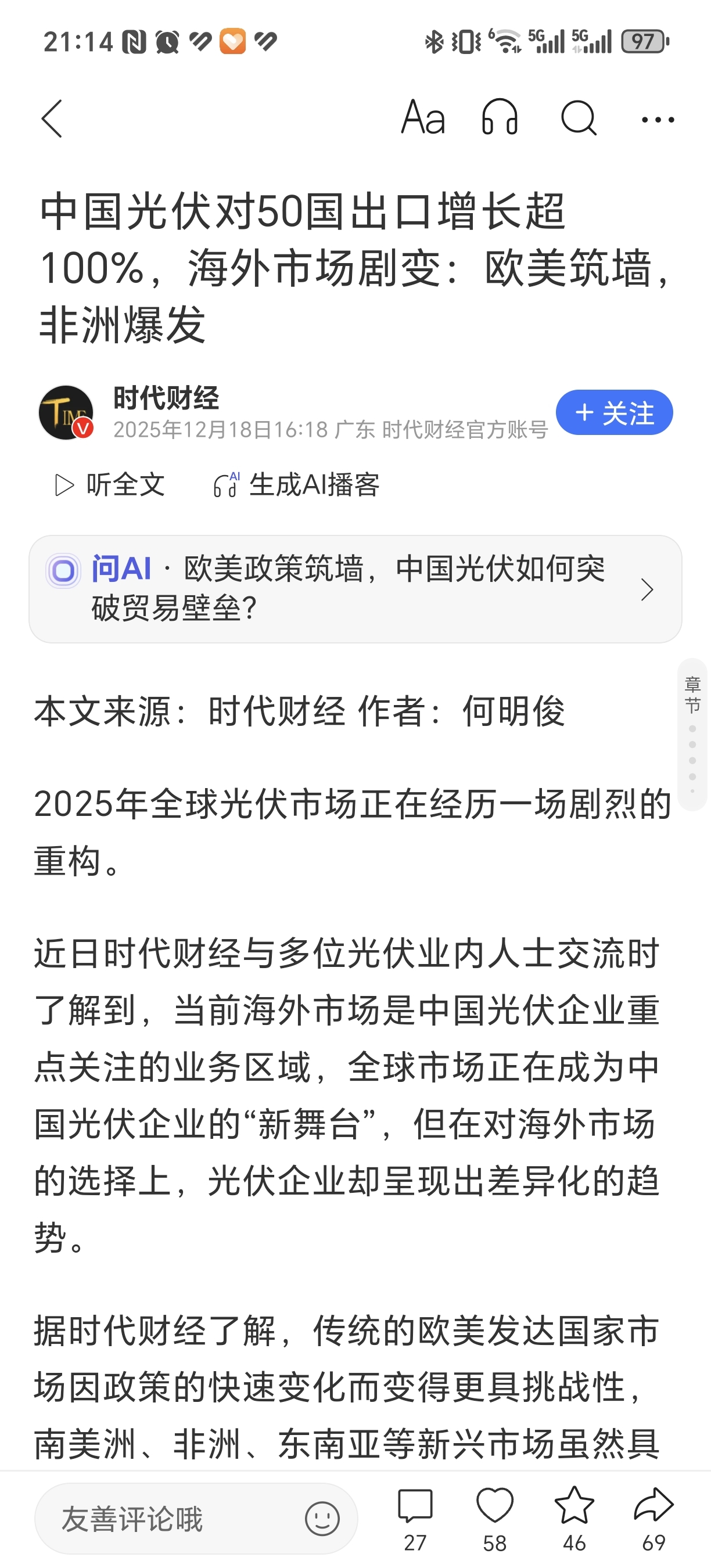 $捷佳伟创(SZ300724)$ “光伏已成为全球投资规模最大的电力领域,年投资超过5000亿美元。2024年全球新增光伏装机近600GW,中国在制造和大规模项目部署上继续领先。”全球太阳能理事会亚太区域总监任晓裴在2025中国光伏行业年度大会论坛上表示,中国光伏在出口的过程中也要投资,在投资的过程中更多地参与当地政策的推进、当地法规的执行等。