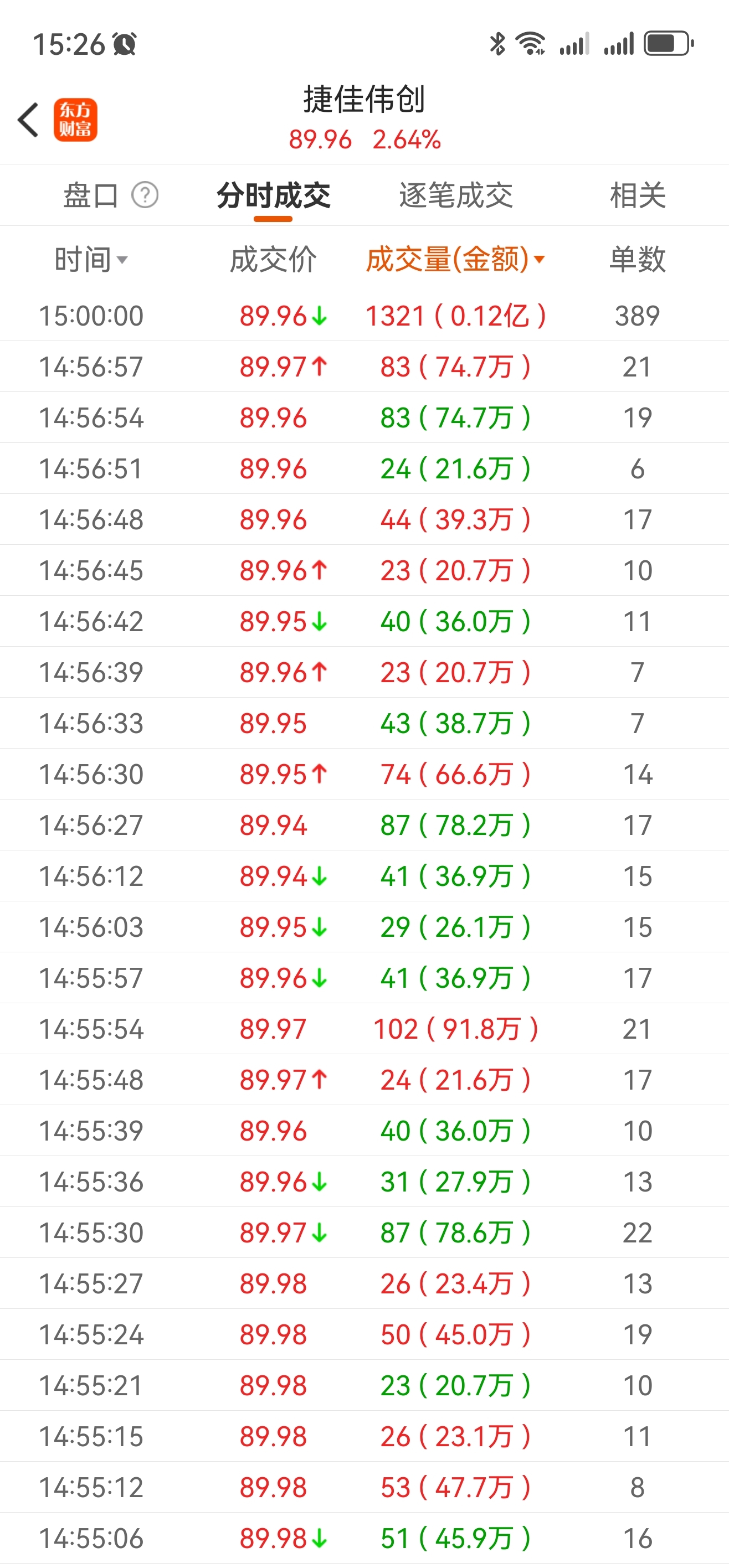 $捷佳伟创(SZ300724)$ 这15:00这一笔是啥意思