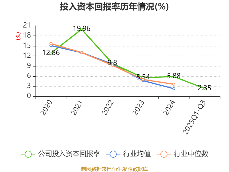 盈利能力方面, 2025年前三季度公司加权平均净资产收益率为2.48%,同比下降2.1个百分点。公司2025年前三季度投入资本回报率为2.35%,较上年同期下降1.35个百分点。