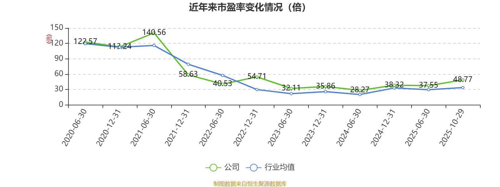 以10月29日收盘价计算,药石科技目前市盈率(TTM)约为48.77倍,市净率(LF)约1.37倍,市销率(TTM)约4.96倍。