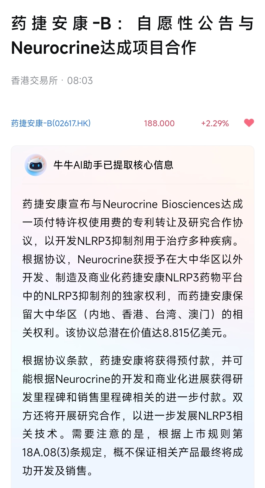 药捷安康的核心药品取得实质性突破,药石的持仓价值更稳了。