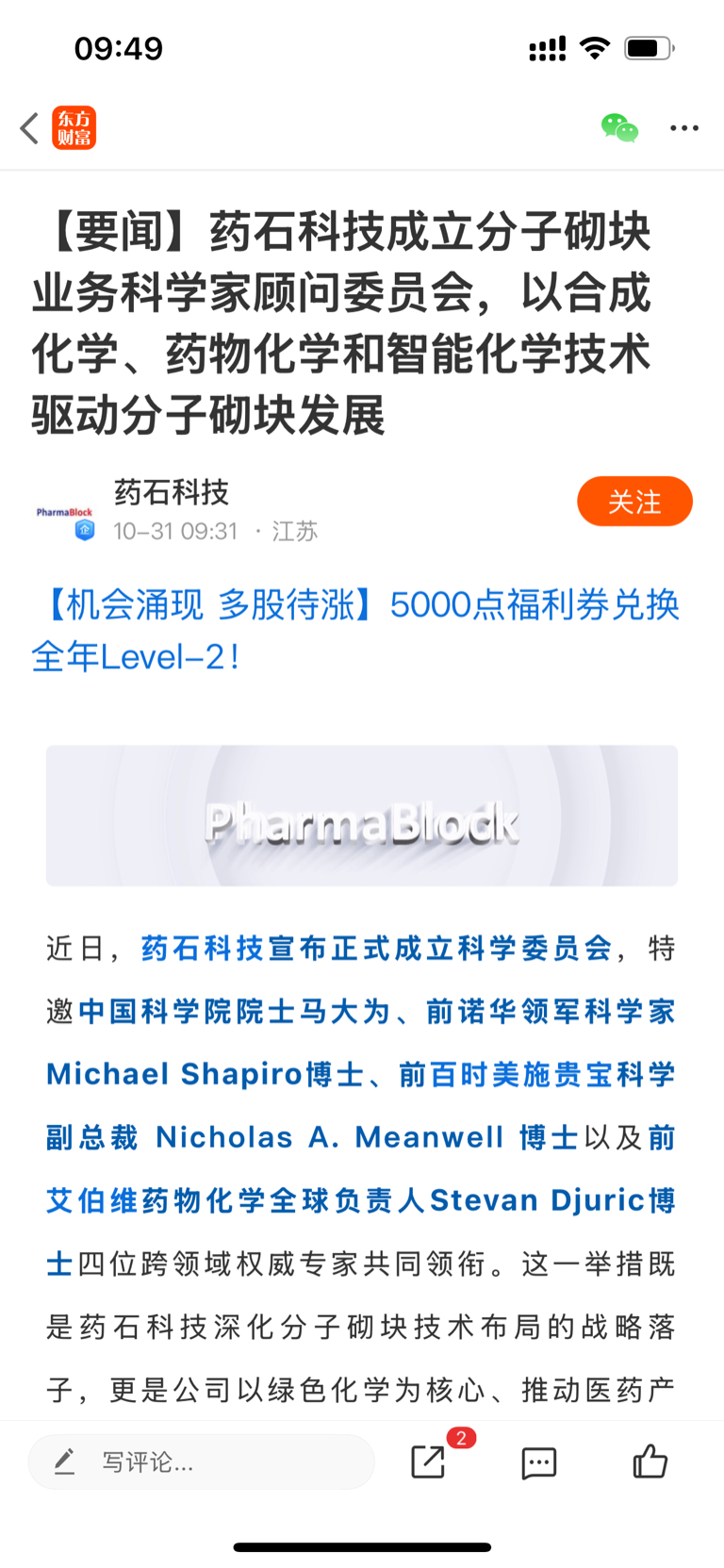 $药石科技(SZ300725)$ 这么大的利好不值得一个板吗?大佬解读一下