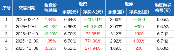 药石科技:融资净偿还231.71万元,融资余额6.64亿元(12-12)