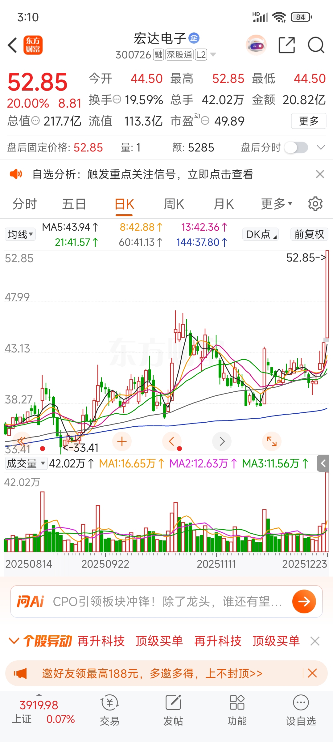 $宏达电子(SZ300726)$ 朋友们对今天这根大太阳有何见解