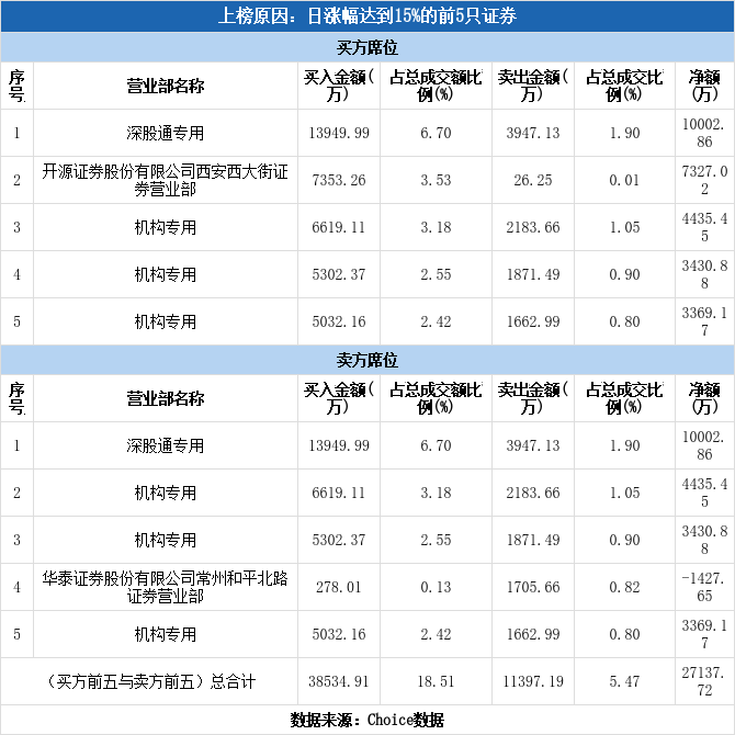 今日龙虎榜单上出现了深股通的身影,占据了买一、卖一的位置,净买入1.00亿元,占当日成交总额的4.8%。除此之外深股通还参与到了国机精工、海南海药、通宇通讯等22只个股中,其中9家呈现深股通净买入,获净买入最多的是国机精工,净买额为2.38亿元;13家呈现深股通净卖出,遭净卖出最高的为通宇通讯,净卖额为9280.77万元。