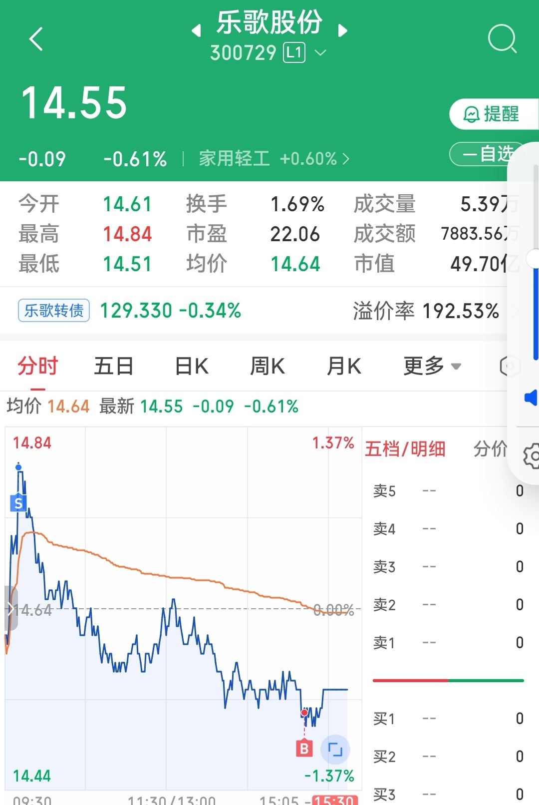 $乐歌股份(SZ300729)$ 耗上了,13.5的本了,不怕他跌