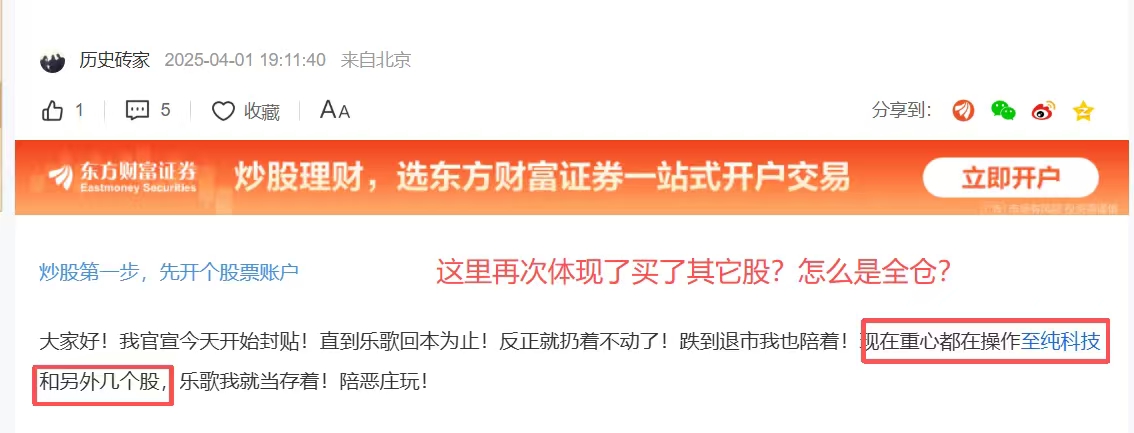 $乐歌股份(SZ300729)$ 闲来无事,翻了股吧历史记录,大概在2023年12月底首次出现历史砖家的留言记录,与其本人说的不符,二,多次进进出出,与其本人说的全仓不符,三,多次还持有其它股票,与其本人说的不符,欢迎历史砖家晒2022年买点图,历史成交图,不然你可以将我贴作为打假贴