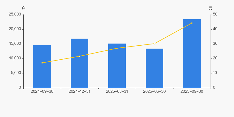 2024年9月30日至今,公司股东户数显著大幅增长,区间涨幅达61.08%。2024年9月30日至2025年9月30日区间股价上涨160.19%。