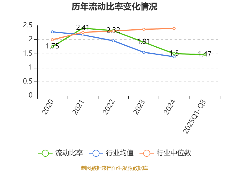 2025年前三季度,公司流动比率为1.47,速动比率为1.18。