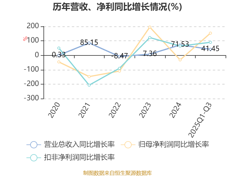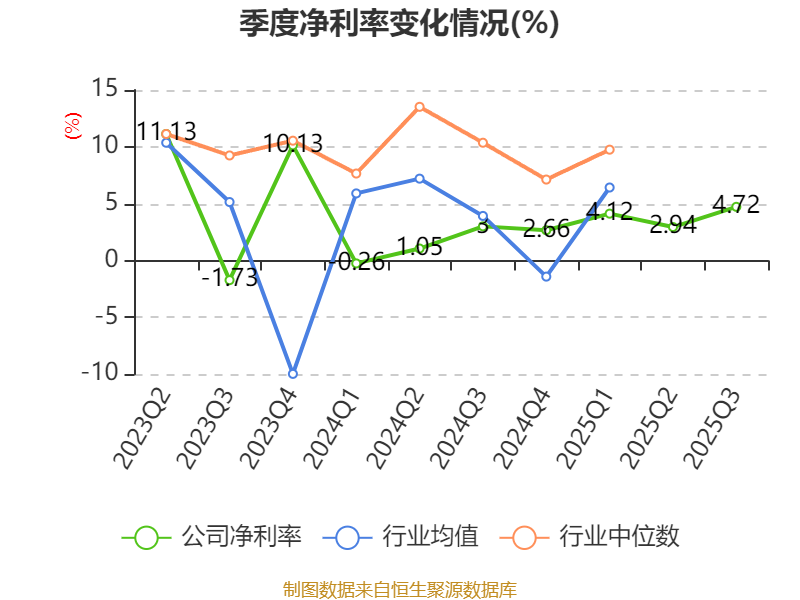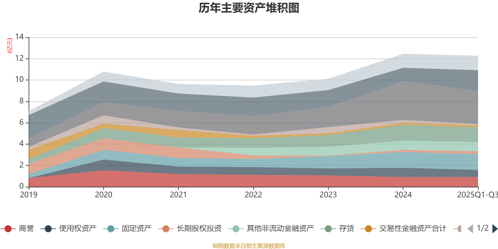 资产重大变化方面,截至2025年三季度末,公司货币资金较上年末增加59.01%,占公司总资产比重上升6.09个百分点;应收票据及应收账款较上年末减少15.89%,占公司总资产比重下降4.29个百分点;使用权资产较上年末减少23.24%,占公司总资产比重下降1.52个百分点;应收款项融资较上年末增加267.03%,占公司总资产比重上升1.45个百分点。
