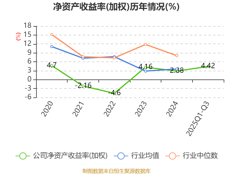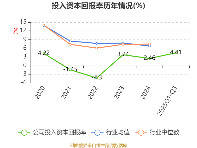 盈利能力方面, 2025年前三季度公司加权平均净资产收益率为4.42%,同比上升2.65个百分点。公司2025年前三季度投入资本回报率为4.41%,较上年同期上升3.06个百分点。