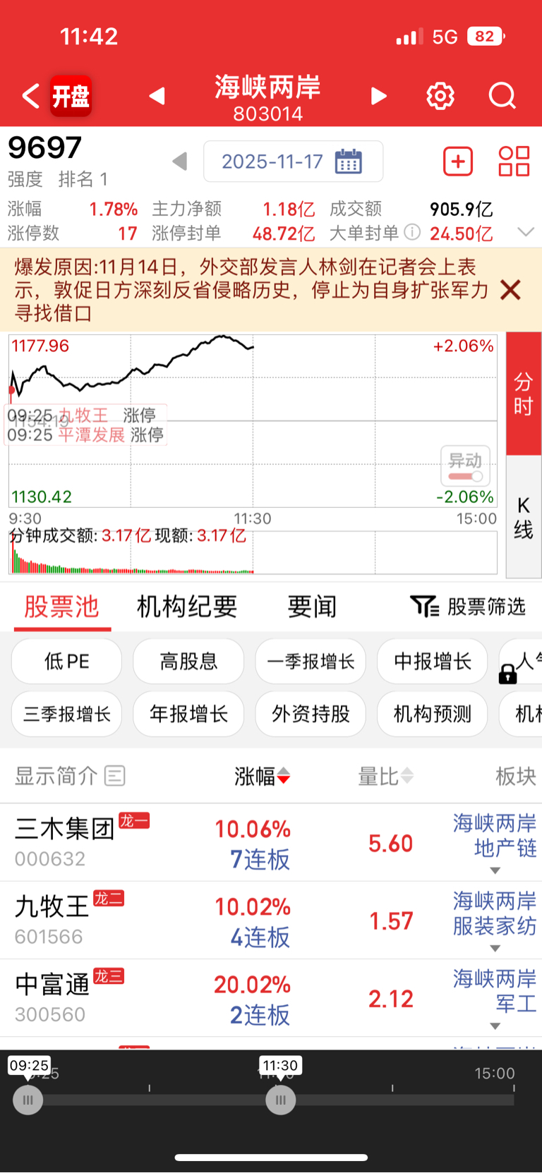 好弱的海峡概念啊,板块上涨反倒是下跌了