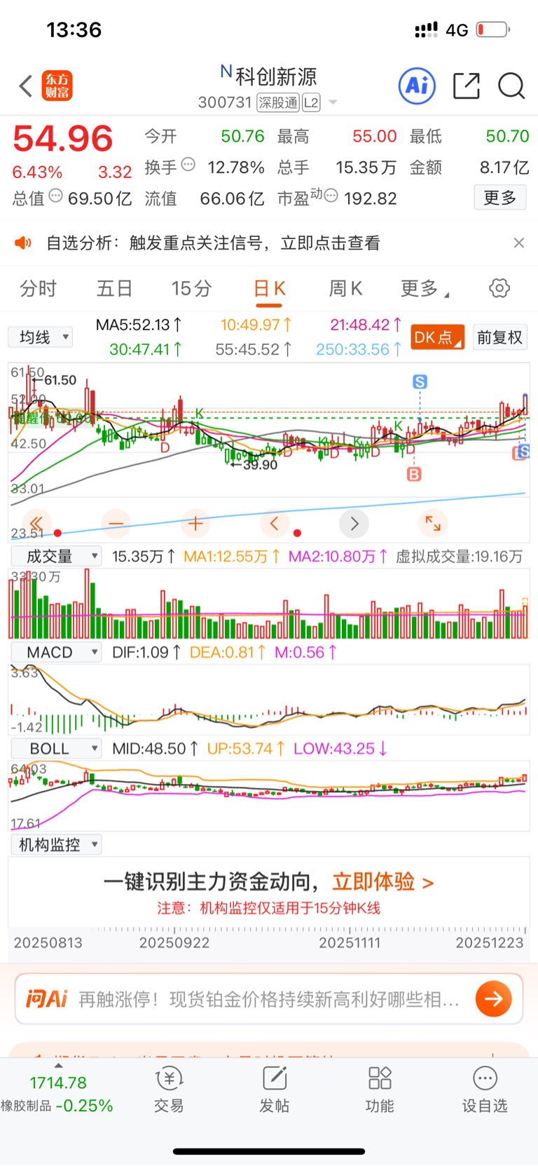 $科创新源(SZ300731)$ 54.97先出来了,被申菱把位置卡了