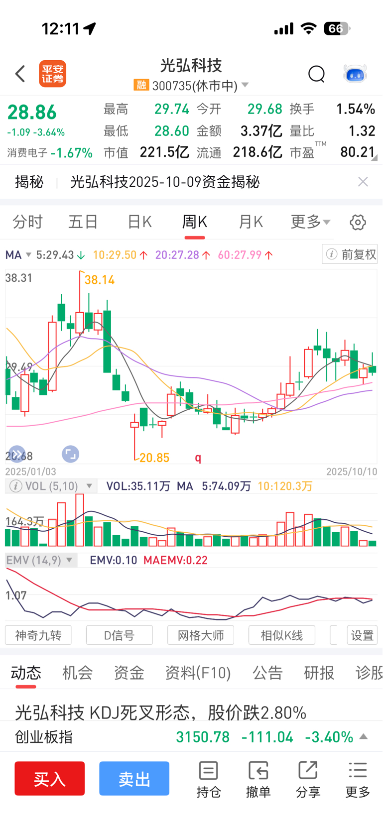 $光弘科技(SZ300735)$ 今天k线就收这个,下午不用去看了,庄家把k线都画好了,故意砸穿5日线周末给散户看空用的,周线也是一样,都是主力提前把k线都画好了,非常的明显,就是要让散户看空