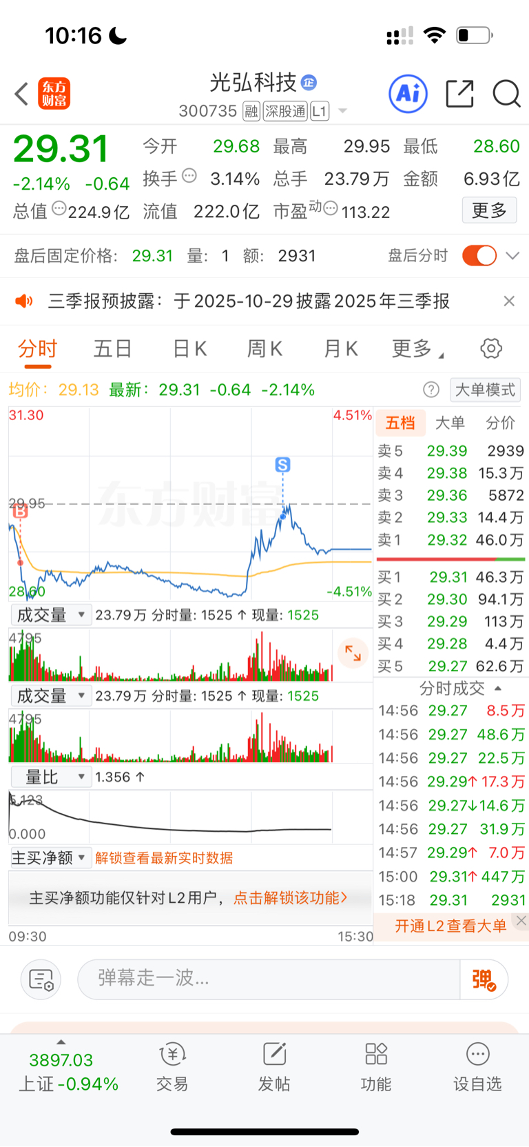 $光弘科技(SZ300735)$ 灵活仓位做T,底仓不动,还要低开洗