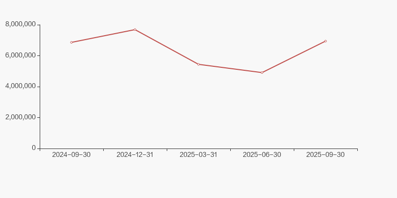 截至2025年9月30日,公司最新总股本为7.67亿股,其中流通股本为7.57亿股。户均持有流通股数量由上期的9798股上升至1.08万股,户均流通市值31.52万元。