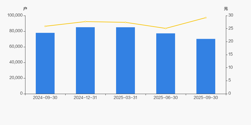 自2024年12月31日以来,公司股东户数连续3期下降,截至目前减幅为17.56%。2024年12月31日至2025年9月30日区间股价上涨5.43%。