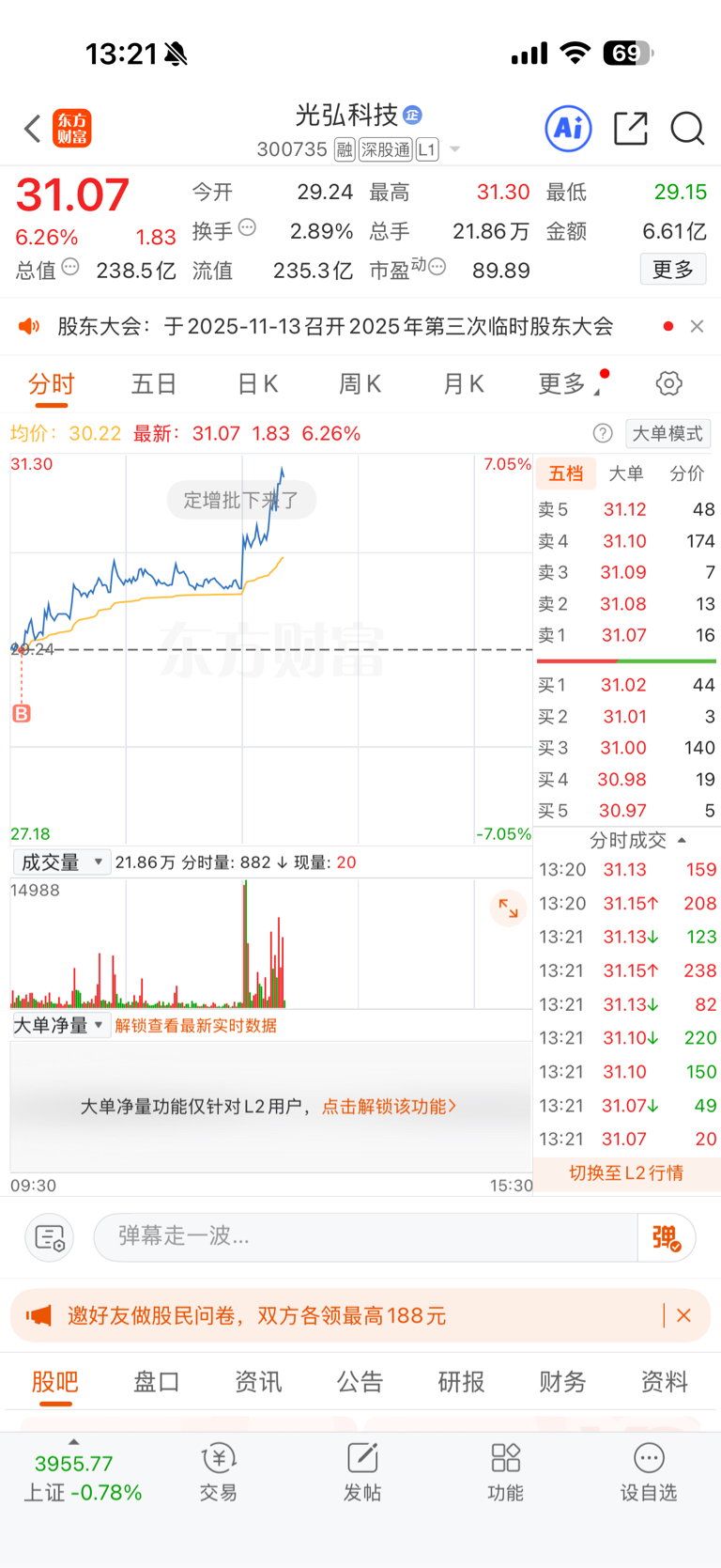 $光弘科技(SZ300735)$ 我的乖乖,别停