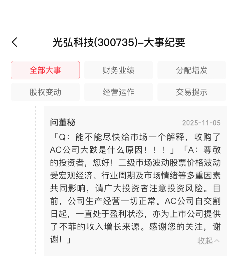 $光弘科技(SZ300735)$ 董秘昨天回复Ac是赚钱的,财报里面体现亏损(不管是什么原因)!这不是在虚假宣传吗?