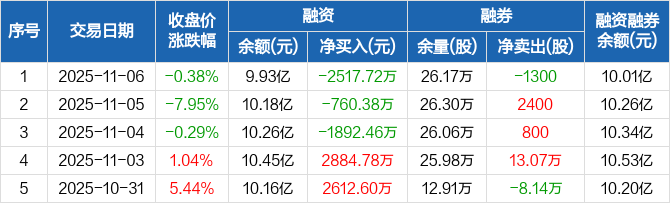 光弘科技:连续3日融资净偿还累计5170.56万元(11-06)