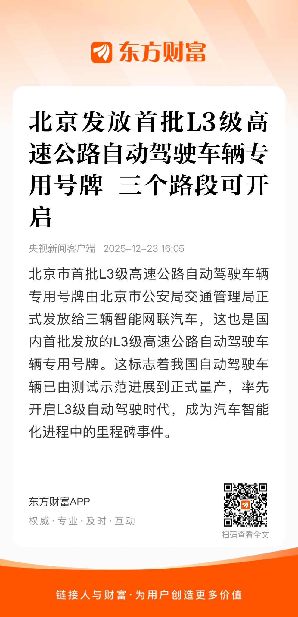 今天L3来了,依然与光绿无关!$北汽蓝谷(SH600733)$ $赛力斯(SH601127)$ $润和软件(SZ300339)$ #国内首块L3级自动驾驶专用正式号牌诞生#
