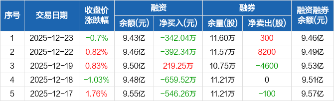 光弘科技:融资净偿还342.04万元,融资余额9.43亿元(12-23)