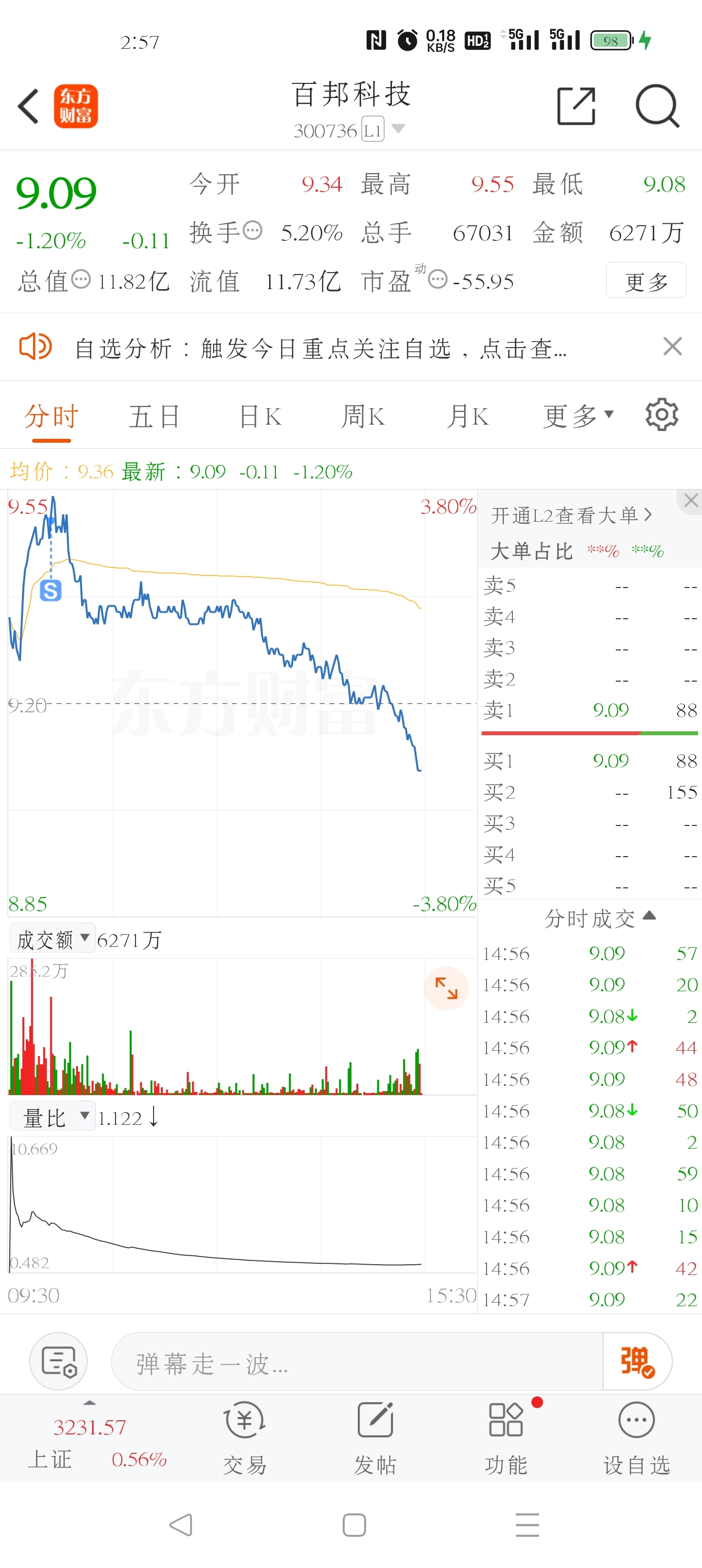 $百邦科技(SZ300736)$ 跌破九块我再来!