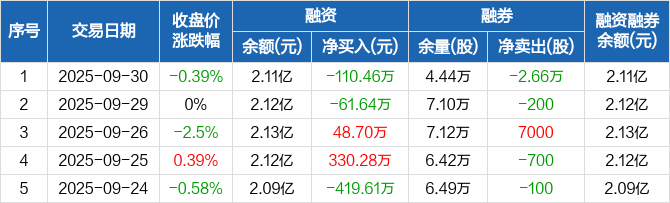 科顺股份:融资净偿还110.46万元,融资余额2.11亿元(09-30)