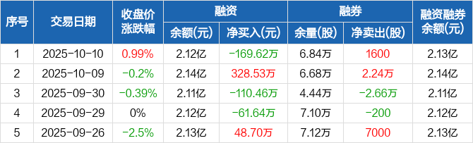 科顺股份:融资净偿还169.62万元,融资余额2.12亿元(10-10)