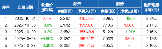 科顺股份:连续5日融资净买入累计1370.72万元(10-31)