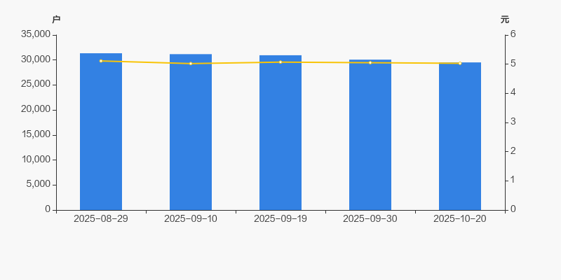 2025年8月29日至今,公司股东户数有所下降,区间跌幅为5.83%。2025年8月29日至2025年10月20日区间股价下降1.58%。
