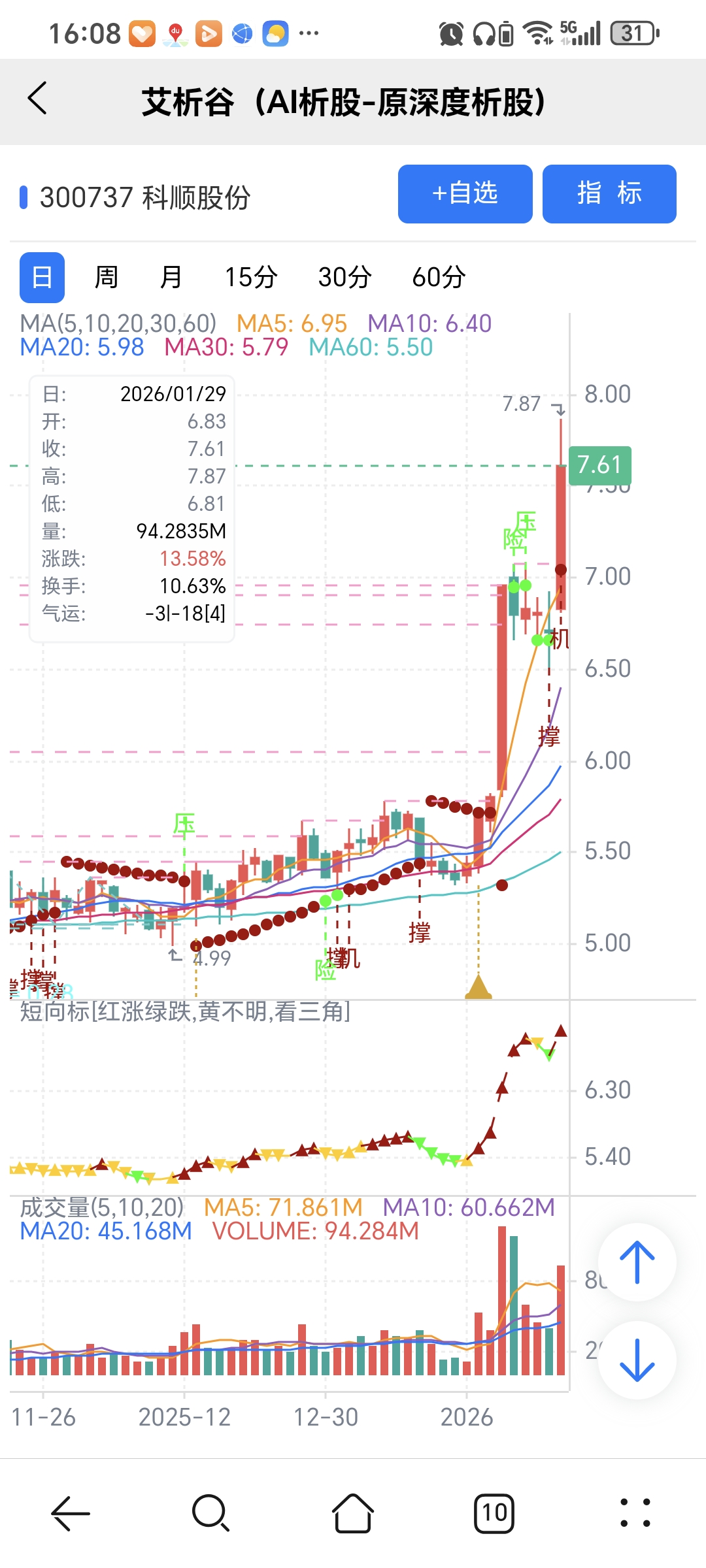 AI模型选股,量化指标识别关键点,简单技术分析确定买卖点,结合量化和人工综合运用,才能有优势。科顺股份
