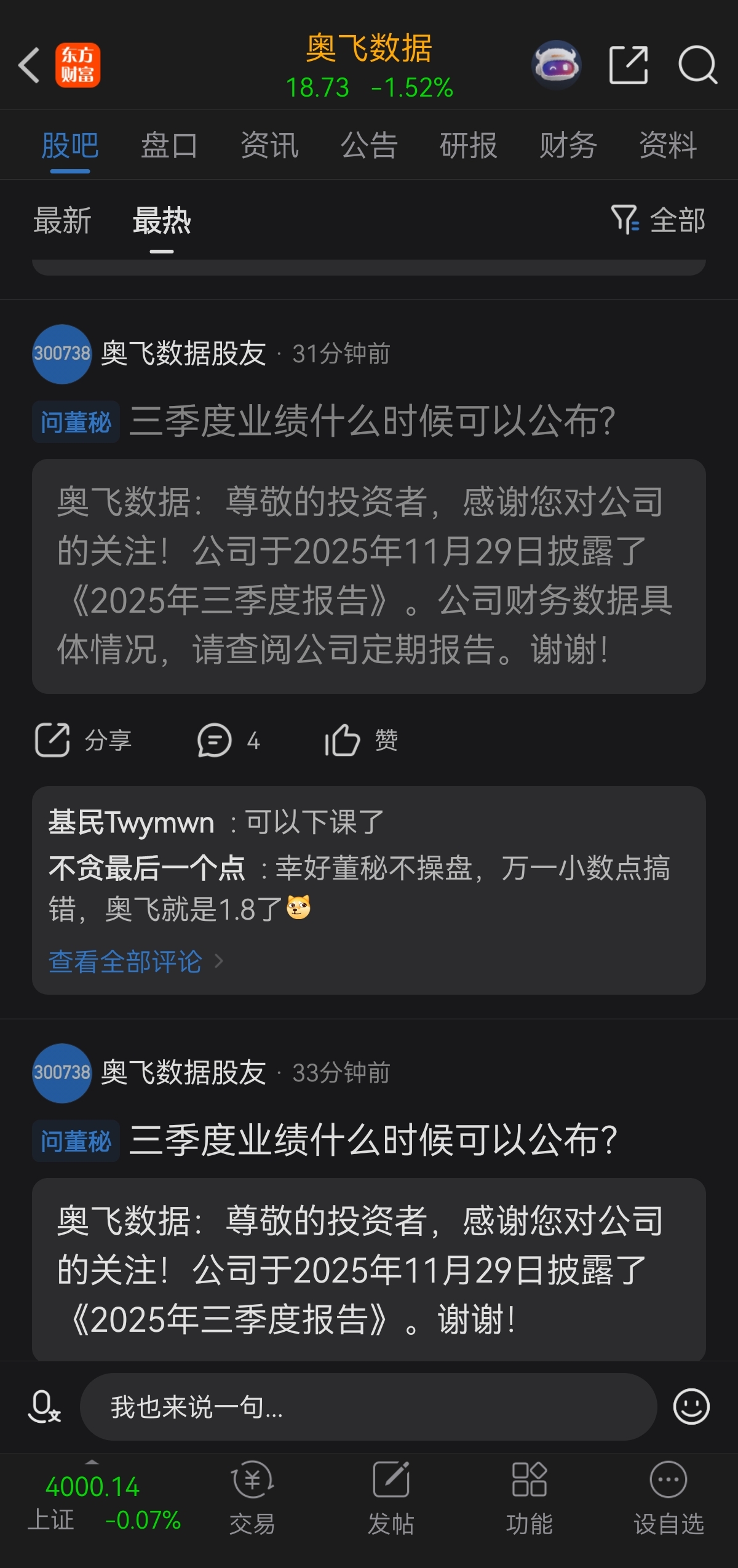 $奥飞数据(SZ300738)$ 这问题有回复的必要吗?把一个没有必要回复的问题还回复成笑话,耻辱啊!