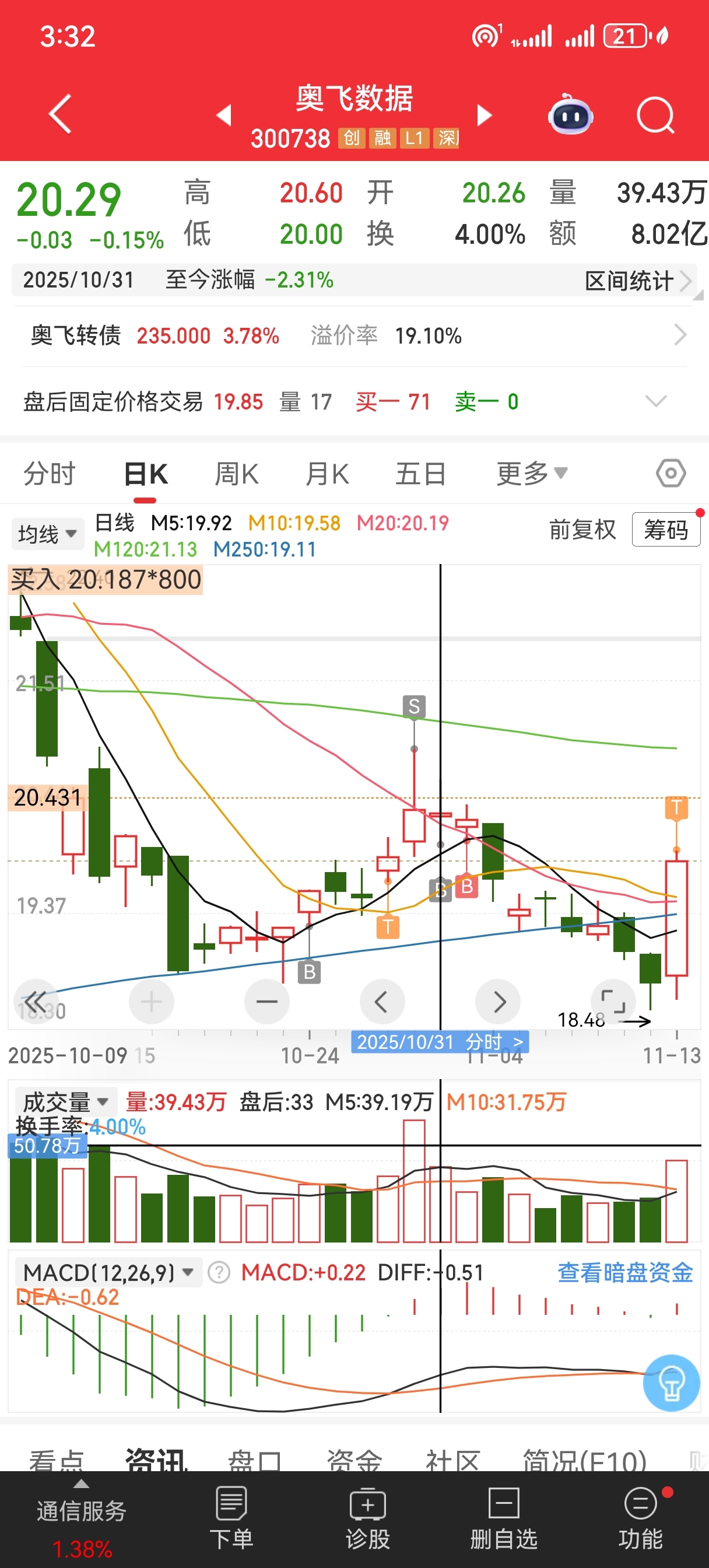 $奥飞数据(SZ300738)$ 果然还是小龙头呢,没看错你,埋伏十多天,今天算回点血了,今天看见仓位还有一点就早上买了一点,想不到尾盘拉起做了个T