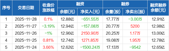 奥飞数据:融资净偿还651.55万元,融资余额12.88亿元(11-28)