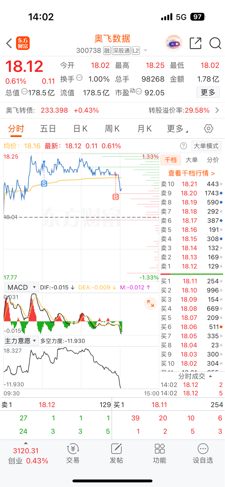 $奥飞数据(SZ300738)$ 这还能说啥,不是被监控了我都不信,从早上挂到现在都没掉,刚撤单高价买进就跌
