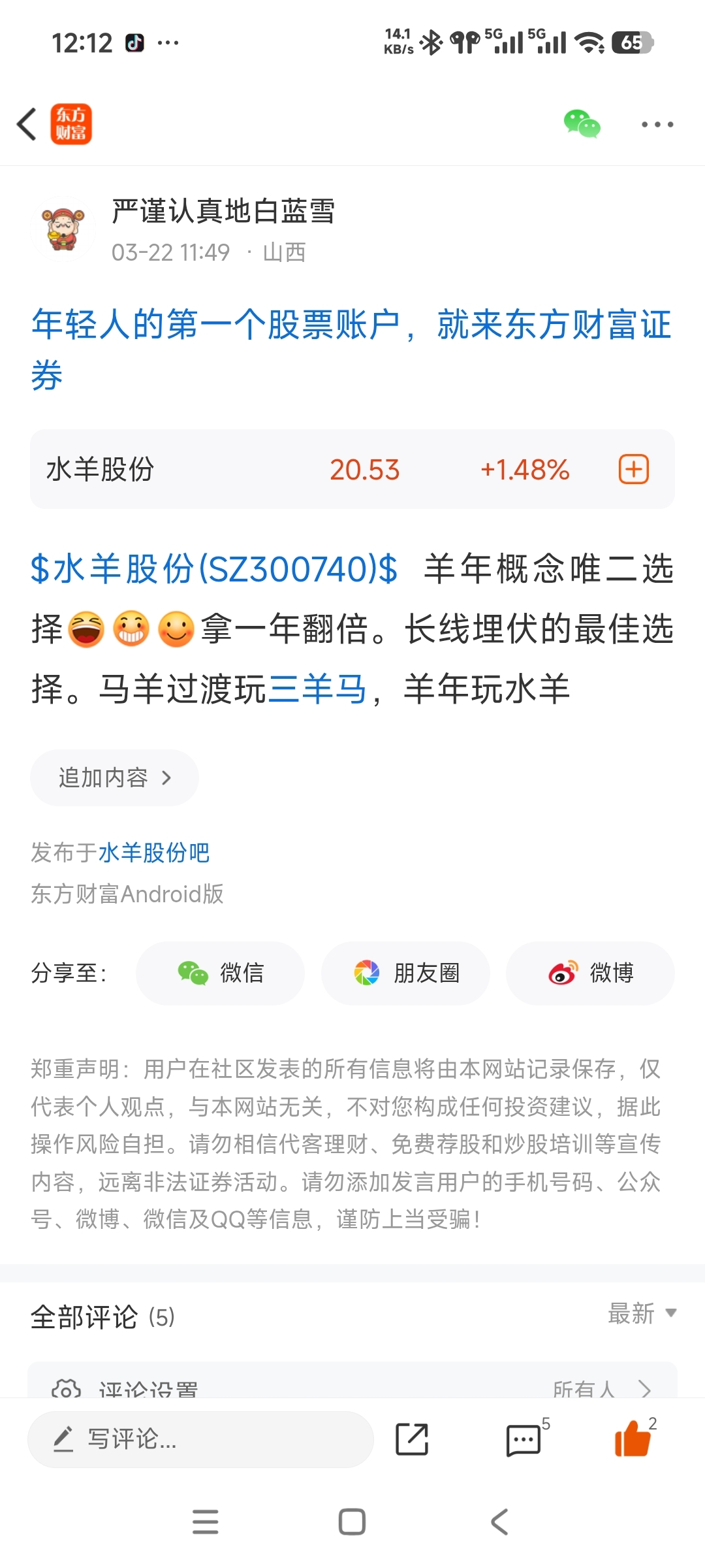 温馨提示: 1.根据《证券法》规定,禁止编造、传播虚假信息或者误导性信息,扰乱证券市场;2.用户在本社区发表的所有资料、言论等仅代表个人观点,与本网站立场无关,不对您构成任何投资建议。用户应基于自己的独立判断,自行决定证券投资并承担相应风险。《东方财富社区管理规定》