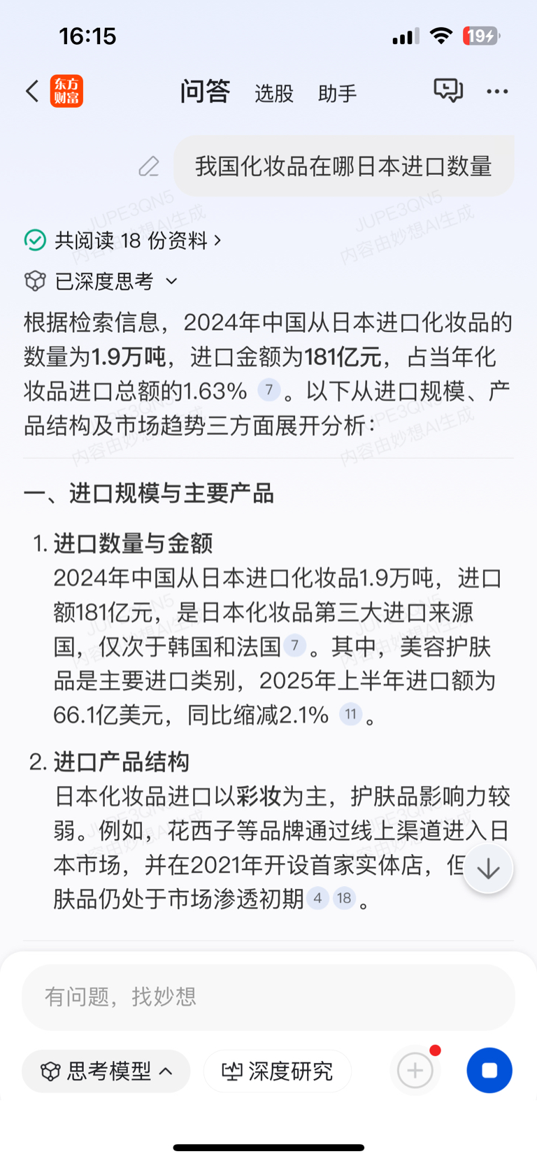 从日本进口的水产品跟化妆品没法比都不是一个计量单位,今天从日本化妆品前6个月进口