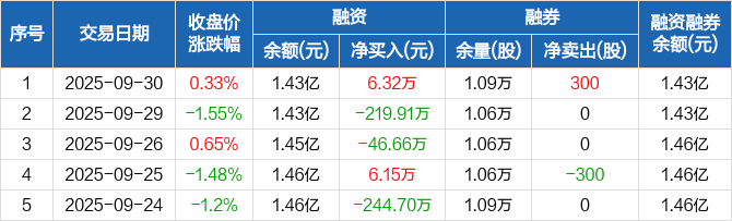 华宝股份:融资净买入6.32万元,融资余额1.43亿元(09-30)