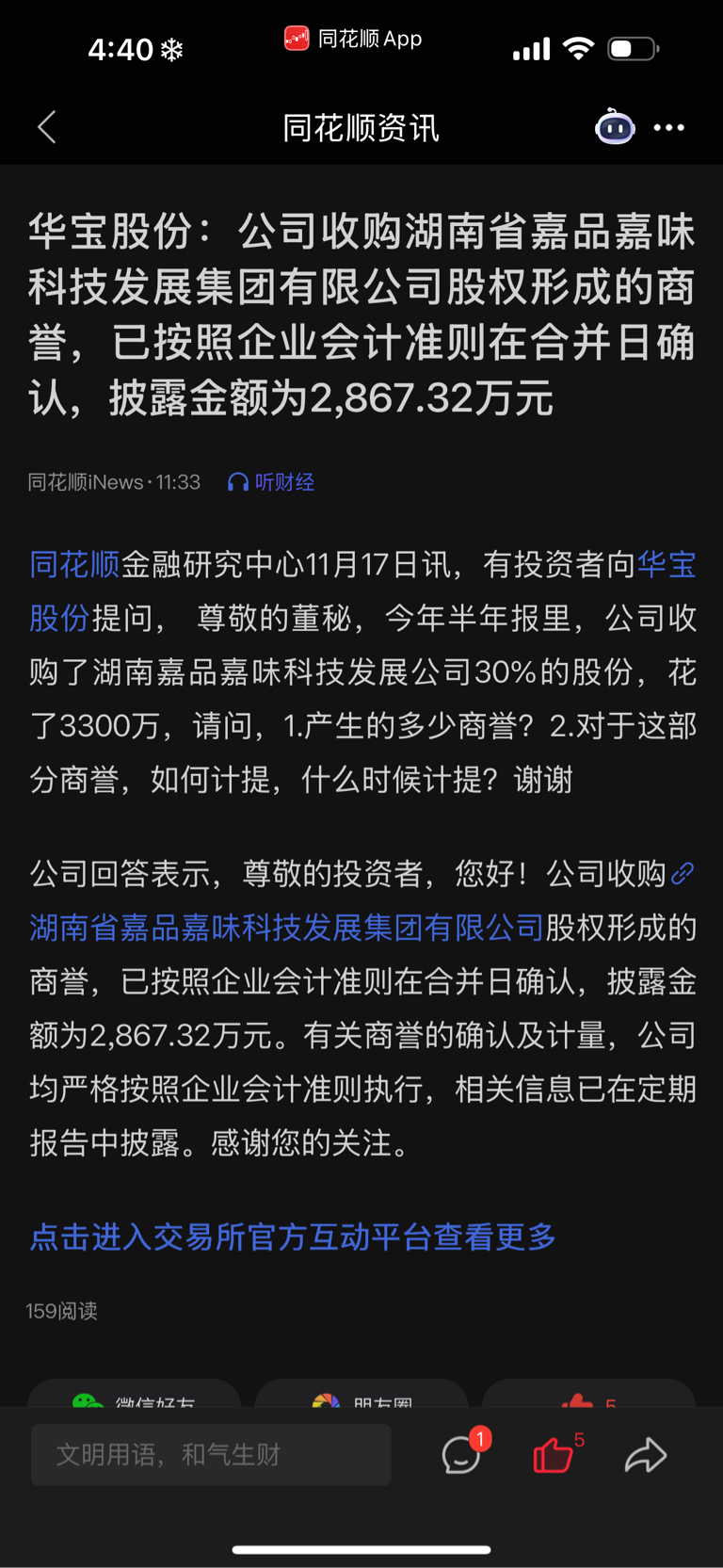 $华宝股份(SZ300741)$ 收购都不涨哎