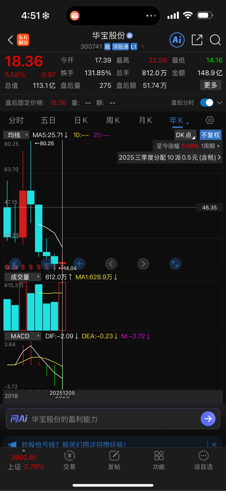 真的不明白今年那么多红三四倍的公司,为什么就不能多个华宝呢,真的失去了信心和信仰
