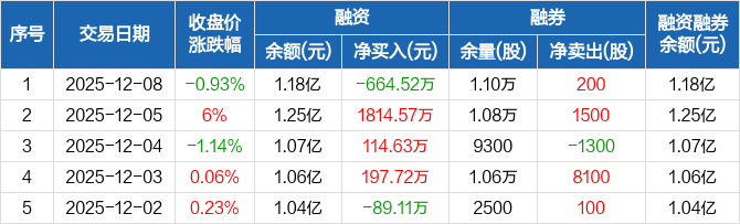 华宝股份:融资净偿还664.52万元,融资余额1.18亿元(12-08)